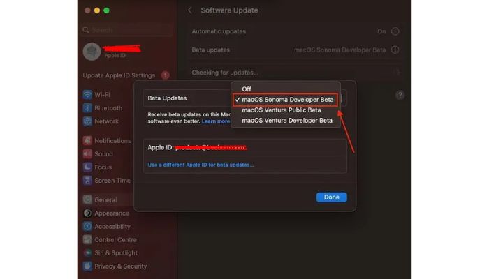 - Now tap on the Beta Updates option and select macOS Sonoma Public Beta from the list.