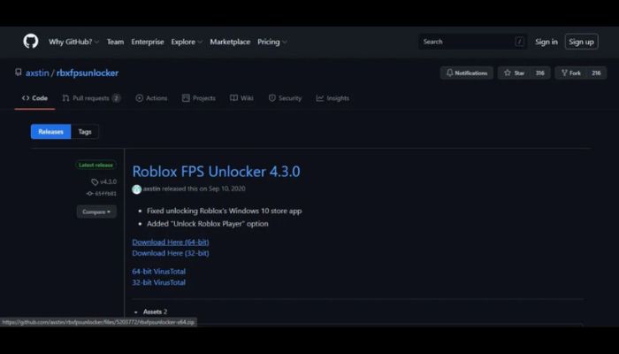 GitHub is a well-known platform for downloading unofficial software, including FPS Unlocker. This version of Roblox FPS unlocker has been released by a developer named asxtin and is available to download on his official GitHub page. To obtain it, follow the provided link, scroll down to the Download section, and click on the file named rbxfpsunlocker-x64-hotfix1.zip to save it to your computer.